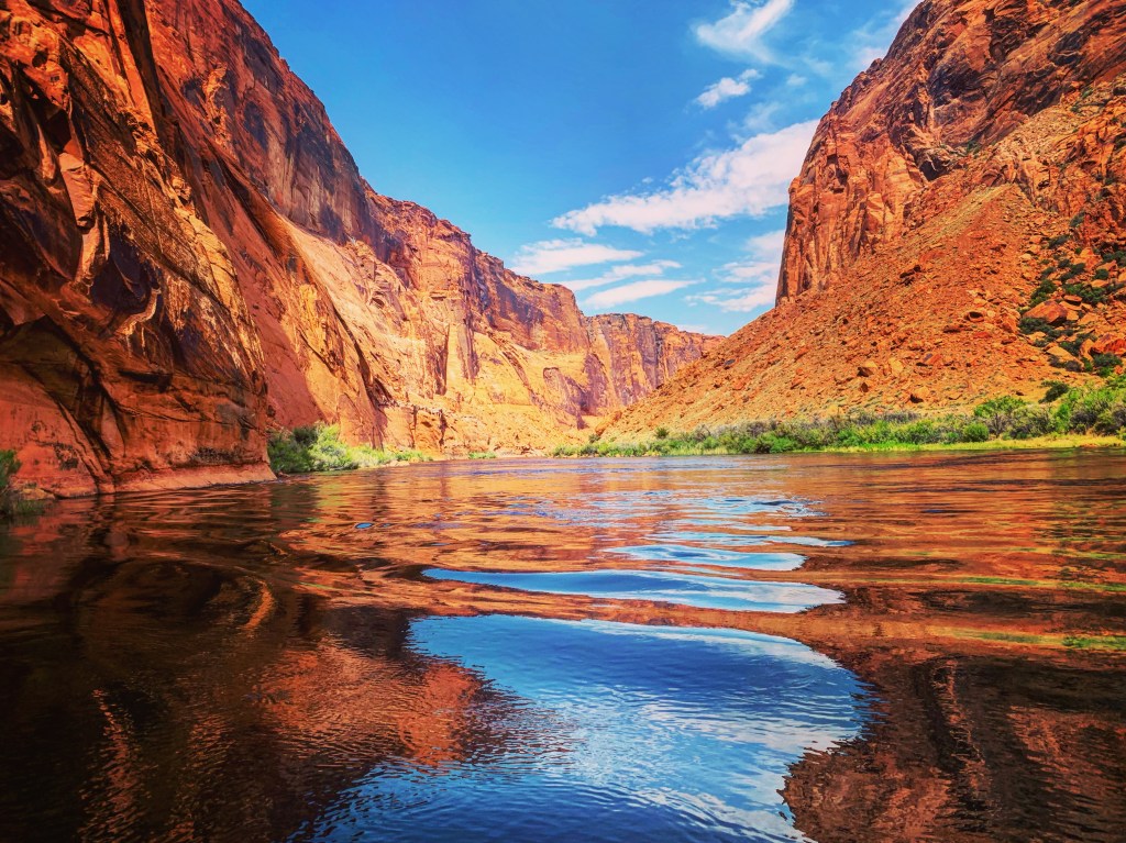The best way to beat the Arizona heat is to get out on the water! We opted for a half day float trip leaving from Glen Canyon and floating fifteen miles to Lee’s Ferry. It started with a short bus ride to the Glen Canyon Dam, where we boarded the rafts. We had about fifteen people on ours, and we got a great spot near the front. The views of the canyon walls were amazing the entire trip. We floated past Horseshoe Bend, where we had seen the sunset the previous evening. We stopped at Petroglyph Beach and got out of the raft to see the carvings and take a dip in the freezing Colorado River. The entire trip was quiet and scenic with plenty of great photo opportunities. We even saw wild horses grazing near the end!